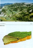 A continuación, fotografía y vista del modelo por elementos finitos en 3D del deslizamiento de Vallcebre, desde el mismo punto de vista. La parte frontal del modelo 3-D corresponde al barranco que se distingue en el centro de la fotografía. <br />